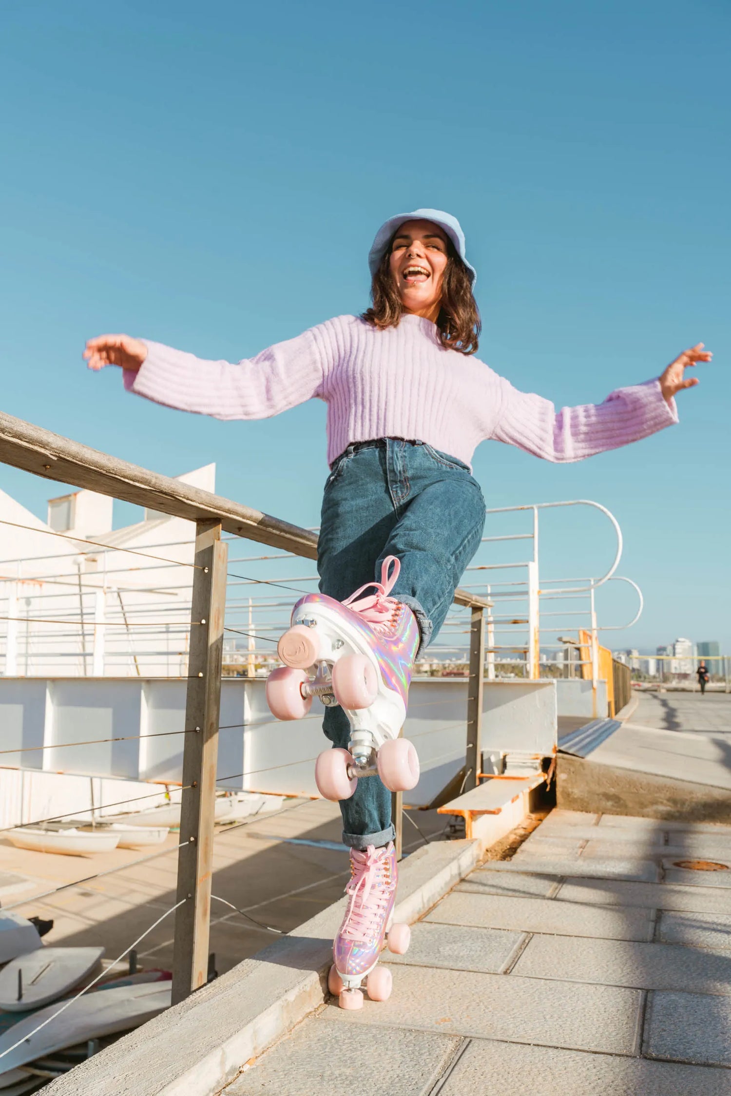 Von der Promenade über die Rollerdisco bis hin zum Skatepark, entdecke, was die Rollschuhe im Melrose Space Holographic Look von CHAYA alles können.