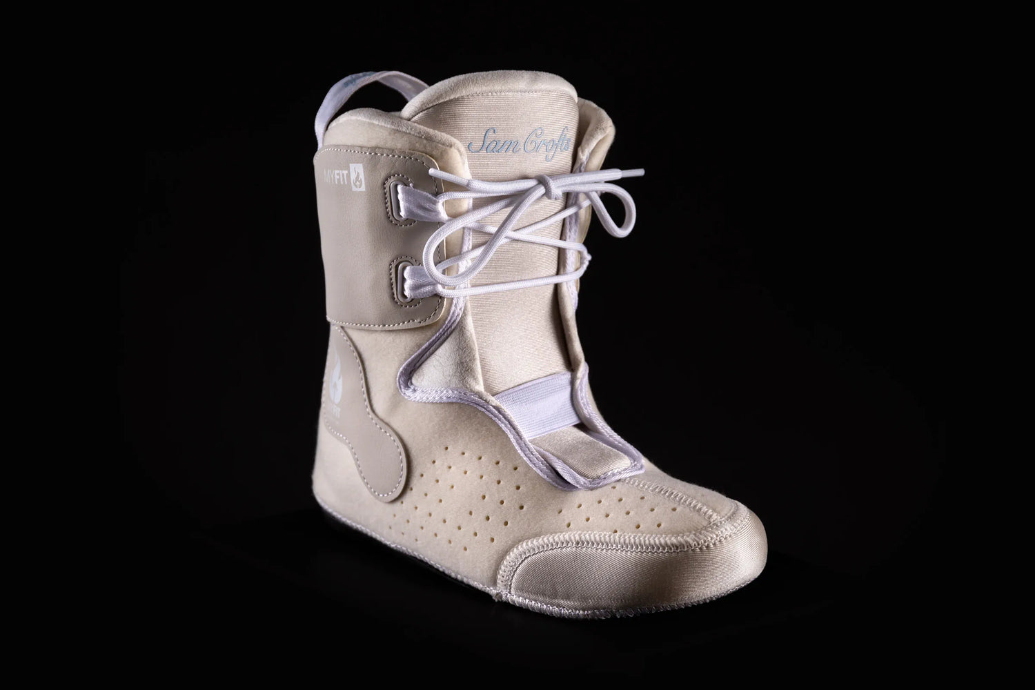 Die obere Schnürung wickelt sich um den Schaft und wird von einem austauschbaren PU-Kragen abgedeckt, der zusätzliche Steifigkeit und Unterstützung bietet.